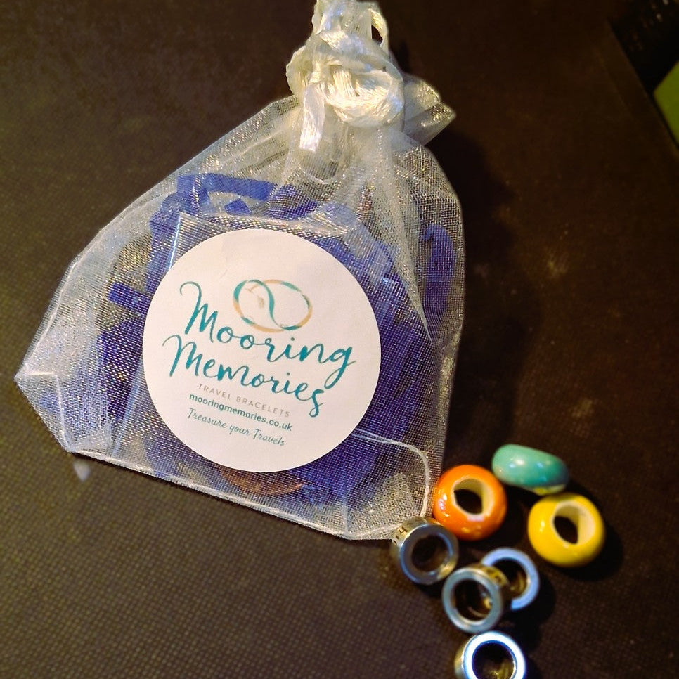 In each box, you will receive your bracelet in the colour of your choice, engraved beads of the Year & Current Waterway, and three spacer beads. When you have completed your journey at the end of the year or your season. You can then let us know the number of Locks and Miles, and we will send these engraved rings out to you to complete your first year and bracelet. You can of course can order extra engraved rings as you complete waterways to add to your collection.